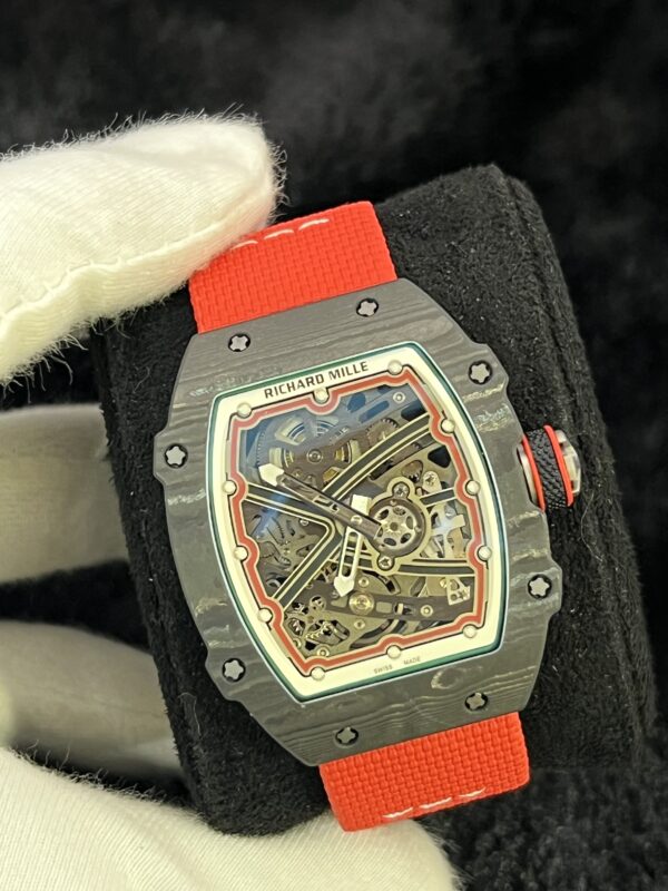 A lightweight and sporty Richard Mille crafted with carbon materials, inspired by Italy. Combines innovative engineering with bold design, perfect for collectors and enthusiasts seeking a high-performance timepiece.