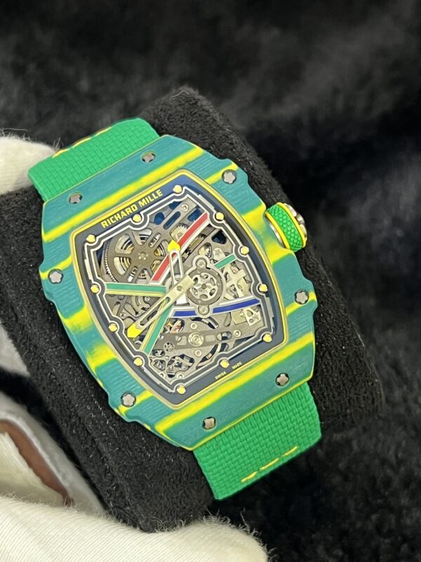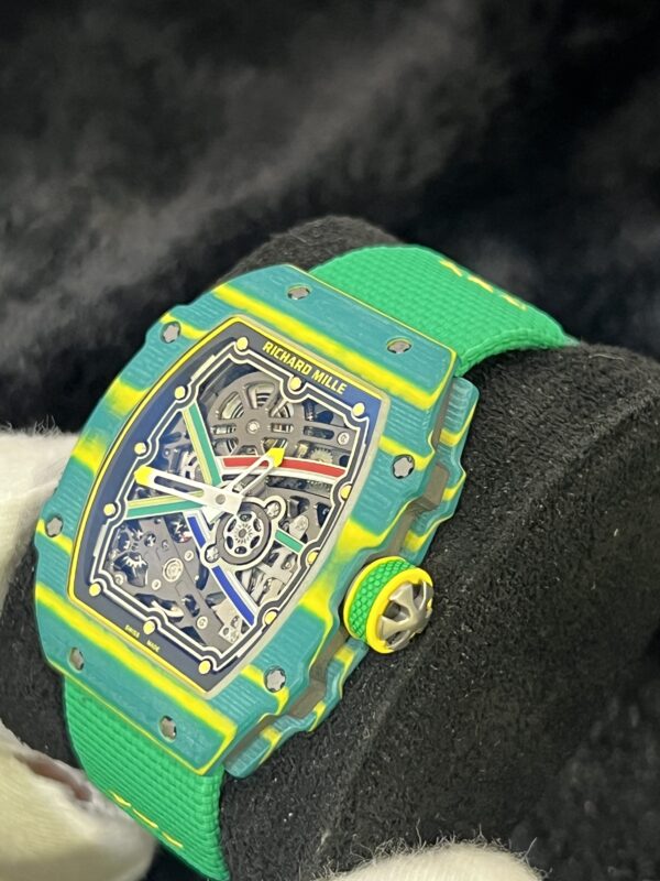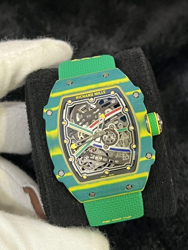 The Richard Mille RM 67-02 Sprint Wayde van Niekerk 38 mm is crafted for speed, innovation, and luxury. It features a lightweight case made from advanced materials for comfort and durability, a design honoring sprinter Wayde van Niekerk?s athletic excellence, a high-precision movement ensuring reliable timekeeping, a sleek and sporty appearance with bold engineering, and a luxury collector appeal ideal for sports enthusiasts.