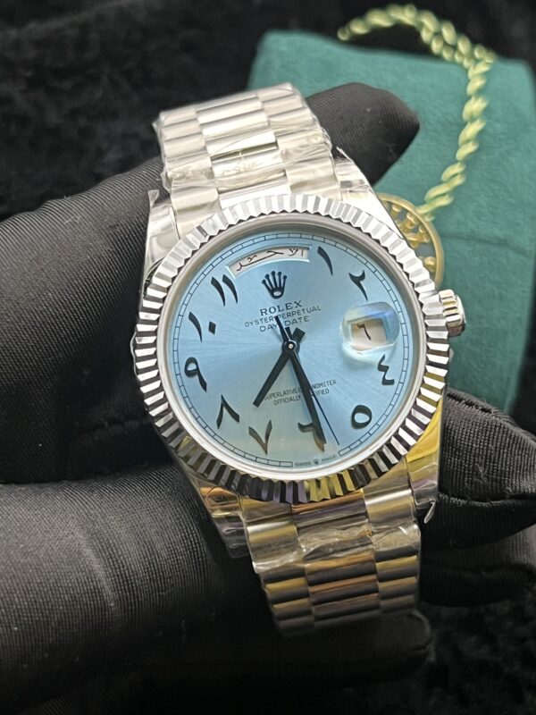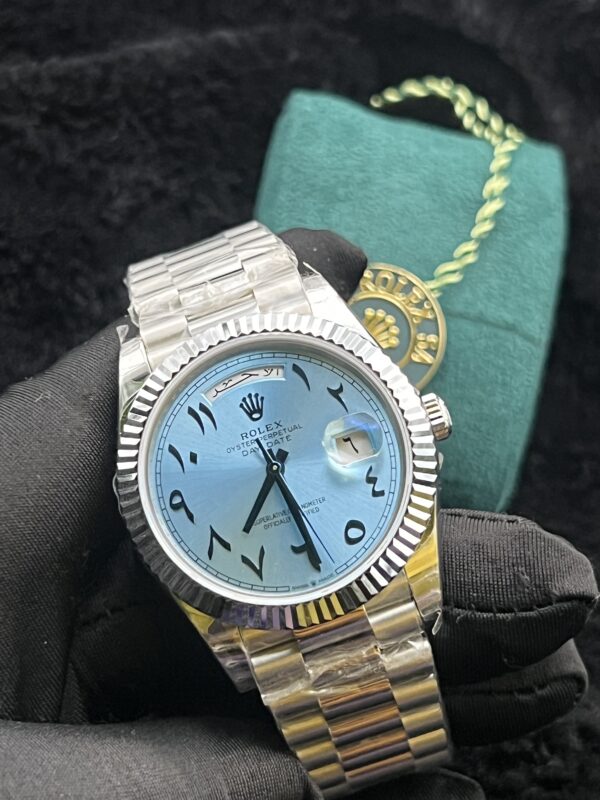 Be the first to review “Rolex Platinum Ice Blue Arabic Day-Date 40 mm” Cancel reply
